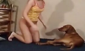 A girl has sex with a dog in a doggy style, a collection of XXX videos6:06